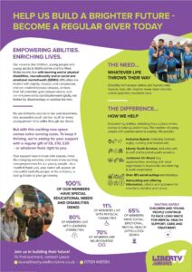 Regular Giving is a simple monthly donation and if it’s something you can afford, we’d be very grateful. It helps us plan ahead, keep vital services running and reach even more people who need us.